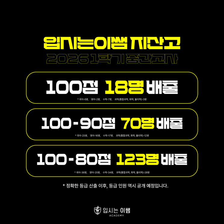 지산고 중간고사에서만 100점 18명 배출 우월한 지산고 전문 국어 영어 수학 과학 학원 - 입시는이쌤 학원