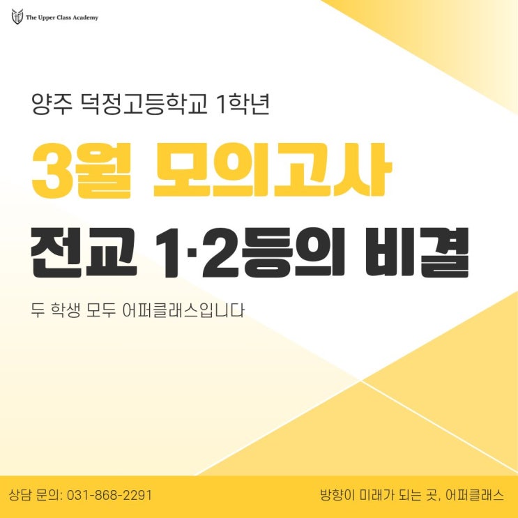 2026년 3월 · 덕정고 1학년 · 국어 모의고사 3월 모의고사 전교 1·2등, 전국 상위 1% — 방학이 만들어낸 결과입니다 "고등학교 첫 시험, 처음부터 정상을 찍었습니다" 안녕하세요! 치열한 입시 현장에서 학생들의 학습 구조를 설계하는 어퍼클래스 학원입니다. 어퍼클래스 학원은 양주 덕정 지역에서 15년 동안 학생들의 입시를 지도해 오며 많은 학부모님들께 꾸준한 추천을 받아온 입시 전문 학원입니다. 덕정학원, 덕정고학원, 덕계고학원, 덕정중학원, 고암중학원, 희천중학원 등을 찾는 분들께 신뢰받는 덕정 지역 대표 입시 학원으로, 그만큼 입시에 진심으로 임하고 있습니다. 국어 선생님은 알았습니다 2026년....... <img src="https://blogthumb.pstatic.net/MjAyNjA0MjJfMjE1/MDAxNzc2ODQ5NzYxNjE5.0JMJ2xXC9O0qKWSYO0QOQn5v3BeVVcQjlMyAGxX1k-wg.cIj9cWEWAaa1YLwPW4dwNE96si93d314fUmdRZl94ckg.JPEG/%C1%A6%B8%F1%C0%BB_%C0%D4%B7%C2%C7%D8%C1%D6%BC%BC%BF%E4._%284%29.jpg?type=s3" />