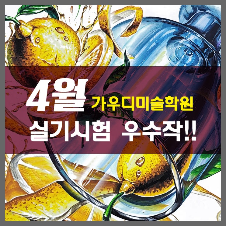쌍문동미술학원 성북 가우디미술학원 4월 실기시험 우수작 공개!! 안녕하세요~ 쌍문동미술학원 성북 가우디미술학원입니다. 이제 벌써 4월 마지막주가 다가오네요~ 날씨가 유난히 따뜻해진 요즘!! 오늘은 본원 쌍문동미술학원 성북가우디학생들의 시험우수작을 소개하고 주제에 따른 해석과 학생 개개인의 구성을 보여드리겠습니다. 주제는 와인잔과 레몬이며 4절에 5시간을 주고 주어진 주제를 활용하여 화면을 자유롭게 구성하고 표현해야 하며 유리표현과 과일 질감 표현이 숙련이 되있어야 좋은 점수를 받을수 있습니다. 이번4월 전국 가우디연합시험에서 A권대 그림과 우수학생작 소개하겠습니다. 제시소재는 와인잔과 레몬으로 표현하기 무....... <img src="https://blogthumb.pstatic.net/MjAyNjA0MjJfMjYz/MDAxNzc2ODU2NDk4Njk0.mvxQsERORvrx0JoLevuV-5QMLS3jSdw7smbgZe2lOyMg.MUVFW4YRqi-7TmJ47UUq6UyuEfkEm1vbaGFmowRoWWkg.JPEG/%BF%AC%C7%D5%BD%C3%C7%E81.jpg?type=s3" />