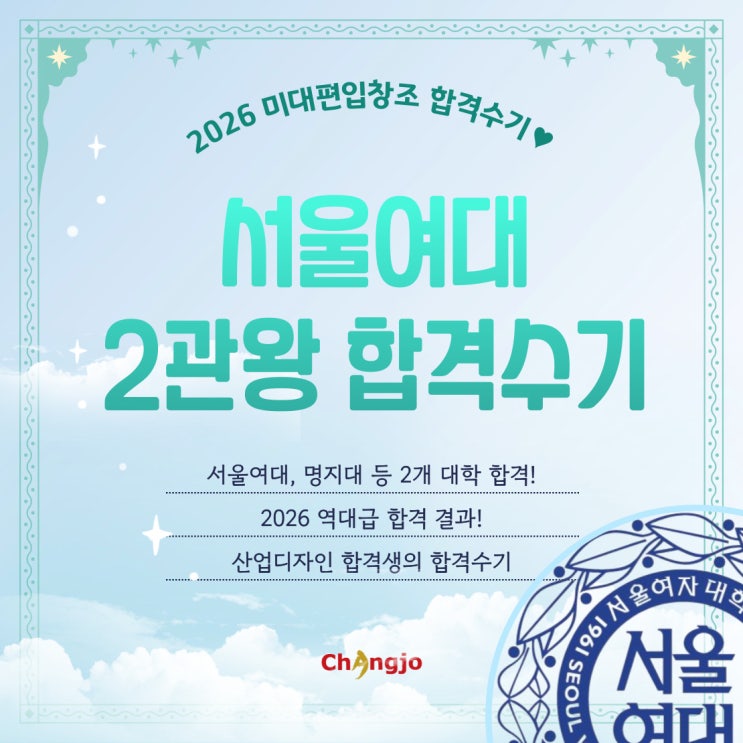 안녕하세요 미대편입창조입니다ㅏ 오늘도 가져왔습니다! 합, 격, 수, 기 서울여대 등 2관왕의 합격생의 수기 지금한번 만나러 가시죠 2026년 미대편입 서울여대 등 2관왕!! 한OO 학생의 합격수기 공개 Q1. 미대편입 결심한 이유( 지원동기) 24년도 6월에 처음 학원에 들어와서 25년도 편입을 준비 후, 재수를 결심하고 1월까지 26년도 편입을 준비하여 총 1년 반 정도의 준비 기간을 가졌습니다. 전 무대를 진학함과 동시에, 전공이었던 공간 디자인을 배우며 사용자에게 밀접한 디자인을 다루는 또 다른 분야인 산업디자인에 흥미를 가지게 되었습니다. 하지만 첫 번째 편입을 한 강남대학교에는 학과의 구별이 없어 디자인 융합학과로 이루어진....... <img src="https://blogthumb.pstatic.net/MjAyNjA0MTlfMjM5/MDAxNzc2NTc0MDk3MjA3.OnqKyS4NCrvHFGTHKjDYvWcsekpinXtjkeW9obXBUmsg.jQxGsyZhbVNXZkmpq3ioBmxjfKv6pR5DnpEyGWhAvxAg.JPEG/2026-%BA%ED%B7%CE%B1%D7-%BE%F7%B7%CE%B5%E5%BF%EB-%C7%D5%B0%DD%BC%F6%B1%E2_%BA%B9%BB%E7%BA%BB-004.jpg?type=s3" />