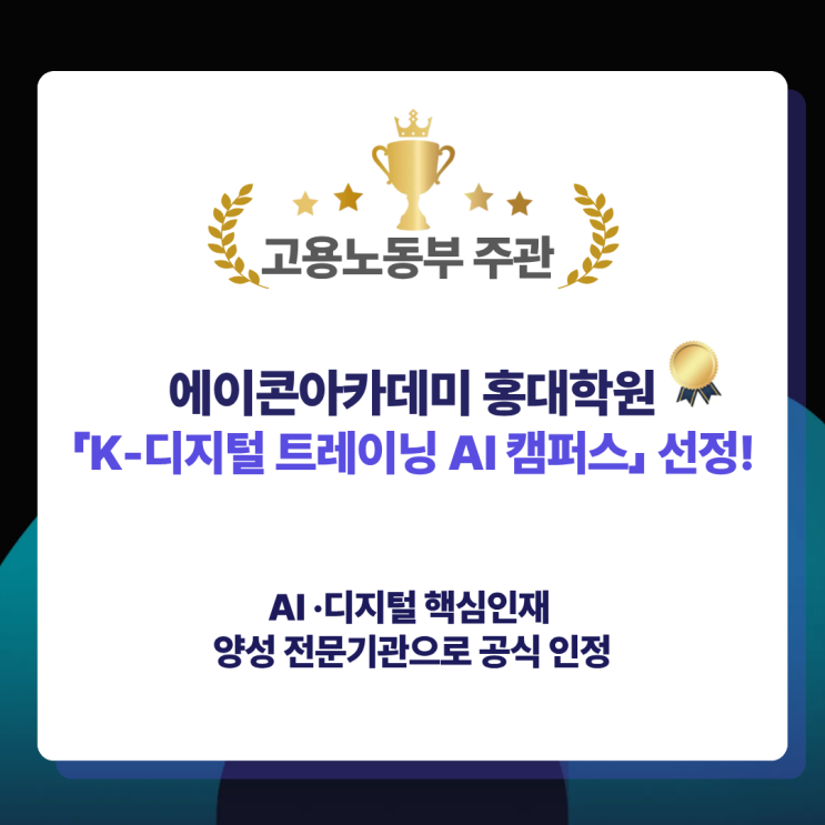 [에이콘아카데미 홍대학원] K-디지털 트레이닝 AI 캠퍼스 선정!