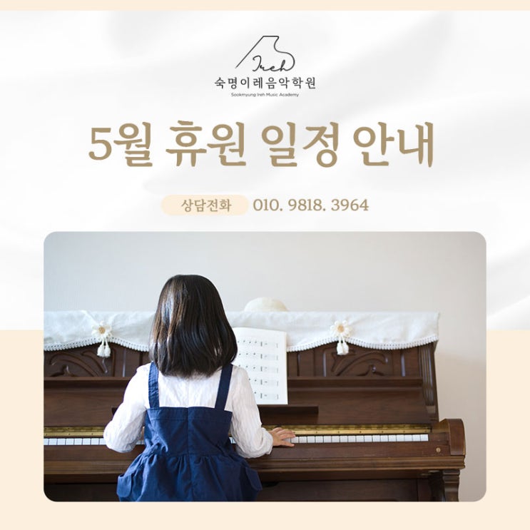 신도림 초등 음악학원 | 5월 휴원 일정 안내