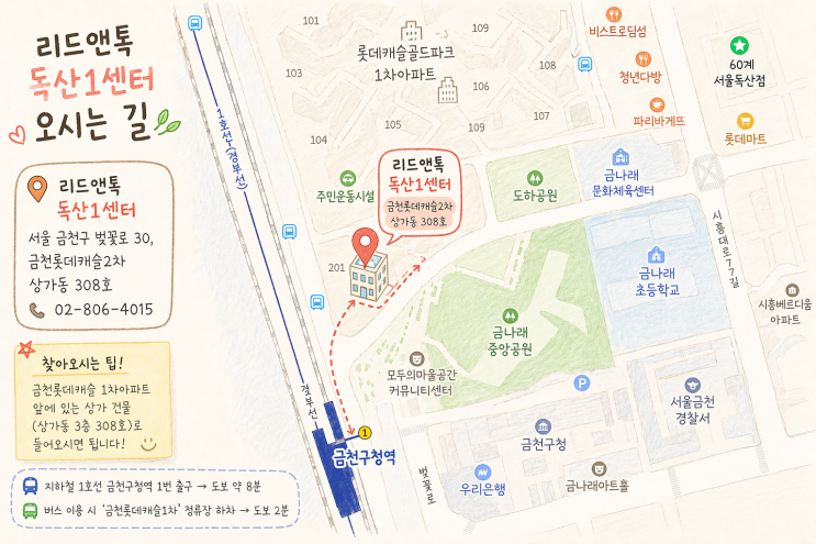 리드앤톡 독산1센터 오시는 길 [금천구청역 인근 / 롯데캐슬2차 상가 3층]