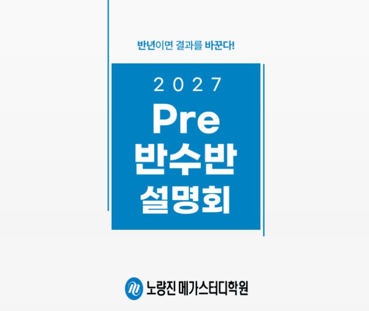 빈틈없는 관리, 틀림없는 결과! 안녕하세요. 노량진 메가스터디학원입니다. 요즘 반수를 고민하는 학생들이 정말 많습니다. 하지만 막상 시작하려고 하면 “지금 해도 될까?”, “성공할 수 있을까?” 같은 고민이 먼저 떠올라서 망설이게 됩니다. 이런 고민을 안고 무작정 시작하는 것보다, 정확한 방향을 알고 출발하는 것이 훨씬 중요합니다. 반수는 시간과 효율이 핵심이기 때문에, 시작 전에 방향을 제대로 잡는 것이 결과를 크게 좌우합니다. Pre 반수반 설명회에서는 혼자서는 알기 어려운 현실적인 정보를 제공해드리며 1:1 맞춤 컨설팅도 진행 예정이오니 학생 및 학부모님들은 노량진 메가스터디학원 Pre 반수반 설명회에 참석하셔서 많....... <img src="https://blogthumb.pstatic.net/MjAyNjA0MjFfMTQ3/MDAxNzc2NzMyMzI4ODg3.mIMam4noyuK33itb0iPbE1lCzFXpiccvy0729u45tUgg.mPILIdgqmT_fpV9jZKEQ3DhxhwDrldmyHnswJSqZs4sg.PNG/image.png?type=s3" />