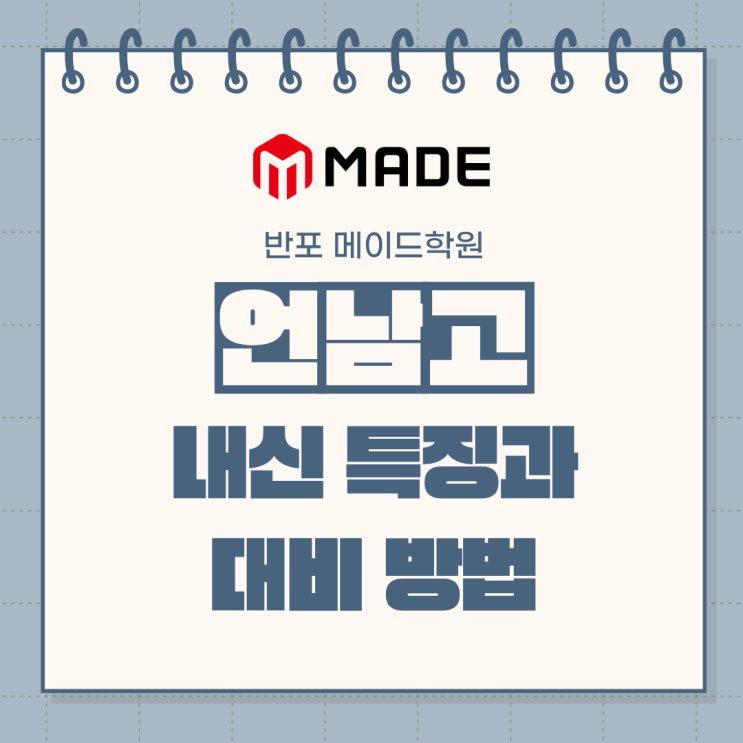 안녕하세요, 언남고 내신대비 수학학원 반포 메이드입니다. 22일부터 28일까지는 언남고등학교의 중간고사가 진행됩니다. 곧 연휴가 많은 5월도 있기 때문에 학생들의 시선이 분산되지는 않을까, 걱정되기도 합니다. 특히, 중간고사 마무리 이후로는 끝났다는 안도감과 함께 긴장감이 풀리게 되며 계속 유지해 왔던 집중이 단번에 풀리는 순간이 되기도 할 텐데요. 야속한 이야기일지 모르겠지만, 반포 메이드에서는 시험 종료 이후로도 바로 마음을 놓아서는 안 된다는 걸 강조, 또 강조하고 싶습니다. '이게 내 성적이라고?', 첫 고등학교 중간고사 이후 당황한 고1들을 위해 모든 학년이 1학기 중간고사 이후, 결과를 받아보고 난 뒤....... <img src="https://blogthumb.pstatic.net/MjAyNjA0MjRfMzMg/MDAxNzc3MDQxMTk2OTk5.6hQqX-vh9jiV9zUyzmP4AsNPQdIuLzLLshsjZ8CmfYQg.PaVQHRqf1Qm3T2pni1zfT6hkI5lSbMlhRMorvQINn8Eg.PNG/1.png?type=s3" />