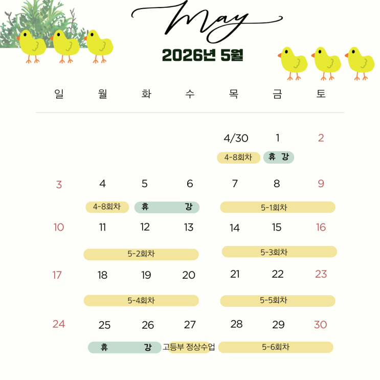 방이동 영어학원 | 5월 학사일정
