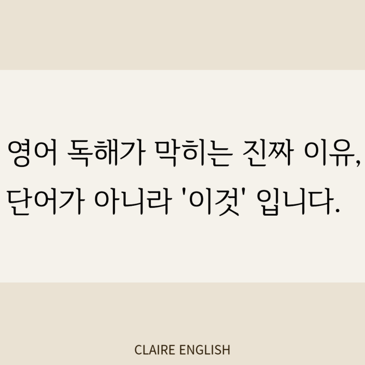금빛초 영어학원 클레어어학원 입니다. 영어를 오래 공부했는데도 독해에서 자주 막힌다구요? 영어교육 전문가로써 말씀 드릴게요 ! 이때 많은 학부모와 학생은 “단어가 부족해서 그렇다”고 생각합니다. 하지만 현장에서 수많은 학생을 지도해보면, 전혀 다른 패턴이 보입니다. 결론부터 말씀드려 볼게요 독해가 막히는 이유는 단어가 아니라 ‘문장을 끊어 읽는 기준’이 없기 때문입니다. 단어는 아는데, 문장이 안 보이는 이유 단어는 아는데 문장이 안보인다니? 왜 이런 일이 발생할까요? -> 이유는 간단합니다. 문장을 ‘단어 덩어리’로 보지 못하고, 한 단어씩 해석하기 때문입니다! 예를 들어 볼게요 ! The boy who is playing socc....... <img src="https://blogthumb.pstatic.net/MjAyNjA0MjJfMjk5/MDAxNzc2ODQyODEyNjky.hnG8l54WcFqZiBocRPeU6-lOkiHKM2yRWdyUi7Pui9wg.Mmllqsgxwjza8PyuFb0CiNWRSu9OslZO8r1FmQJ6AjYg.PNG/%C1%A6%B8%F1%C0%BB_%C0%D4%B7%C2%C7%D8%C1%D6%BC%BC%BF%E4__%BA%B9%BB%E7%BA%BB-001.png?type=s3" />