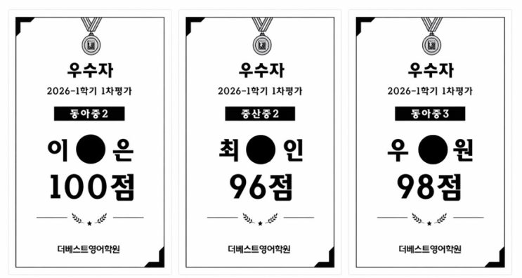 양산 물금 더베스트영어학원 - 2026년 1학기 중간고사 성적 결과