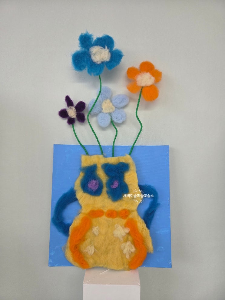 안녕하세요, 새벽이슬 미술교습소입니다 오늘은 아이들과 함께 양모펠트를 활용한 꽃 화분 만들기 수업을 진행했어요. 포근한 질감의 양모를 이용해 직접 꽃잎을 만들고, 줄기를 세우고, 화분까지 완성하는 활동이었는데요, 아이들이 손으로 꾹꾹 눌러가며 형태를 만들어가는 과정 자체를 정말 즐거워했답니다. 이번 작품은 노랑, 파랑, 보라, 주황 등 다양한 색을 활용해서 각자만의 개성이 담긴 꽃을 표현해봤어요 특히 입체적으로 올라오는 꽃 줄기와 폭신한 질감의 화분 표현이 포인트였어요! 양모펠트 수업은 단순히 만드는 것뿐만 아니라 ✔ 소근육 발달 ✔ 집중력 향상 ✔ 색감 표현 능력 까지 함께 키울 수 있는 활동이에요 처....... <img src="https://blogthumb.pstatic.net/MjAyNjA0MjBfMjM1/MDAxNzc2Njc2MTIxMTcy.0zrt_bisq839snpl8Tdq5PfGqmWX_9EfADE7za2Xv1Qg.DvpdTe9Fl5i1aeZI-WrD9mAh7GRZO4W8A5ZOm8qOrK8g.JPEG/KakaoTalk_20260420_180109488_08.jpg?type=s3" />