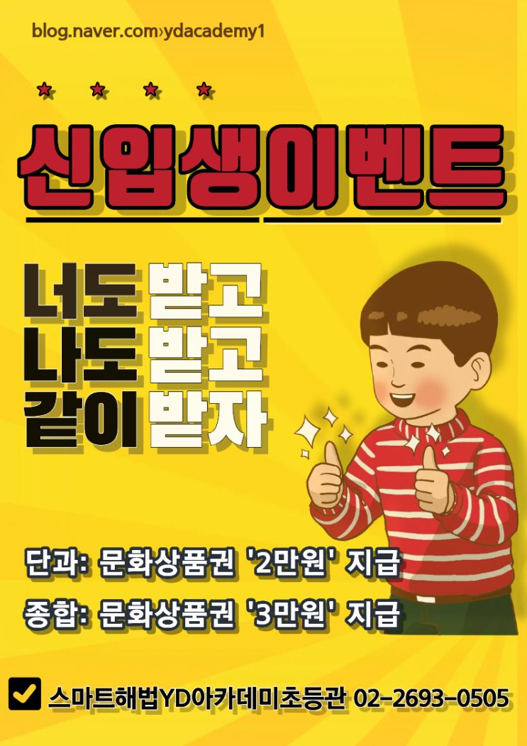 화곡동 초등수학 스마트해법 YD아카데미 초등관 신입생 이벤트 친구 데려오면 문화상품권이 옵니다