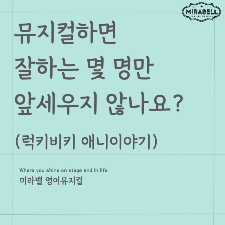 뮤지컬하면 잘하는 몇 명만 앞세우지 않나요?(럭키비키 애니이야기)