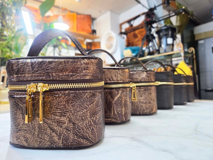 안녕하세요, 가죽공예 기술연구소 레더오브레전드 가죽 아뜰리에 입니다. (Leather Of Legend Atelier) 오늘 선보일 작품들은 다용도 미니 화장품 케이스인데요, 사각형의 미니 도시락 가방 디자인의 모양이 아주 예쁘고 앙증맞게 나와준 그런 가죽 케이스겸 가방이라 할수 있습니다. 이번 가방의 제작은 무려 같은 제품을 5개를 동시에 만드는 위엄을 토해내기도 했는데요, 우리 수업생분의 열정과 가죽에 대한 사랑은 그 어느누구도 비교할수 없을만큼 대단한 에너지를 가지고 계신것 같습니다. 그럼 어떤 디자인인지 한번 살펴보도록 할까요? 이번 제품 가방의 제작 사연은 매우 아름답고도 나름 행복한 기분을 선사하는 뿌듯한 연결고리같은....... <img src="https://blogthumb.pstatic.net/MjAyNjA0MTBfMjAz/MDAxNzc1Nzg5OTgyNzYx.A9YxaBKsYqyUV2AXRONTiqLM0wiVdd7b2asNi75KBhQg.3WUHRhLIDNO4iUS-DGsnqmUfghBI4_xcSGFsKinuOkEg.JPEG/20260403_174932.jpg?type=s3" />