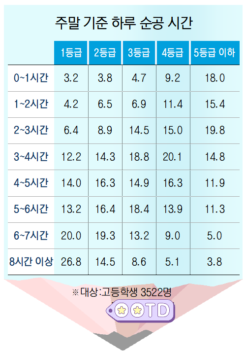 ‘주말 8시간 이상 초집중’ 1등급 26% vs 5등급 3%