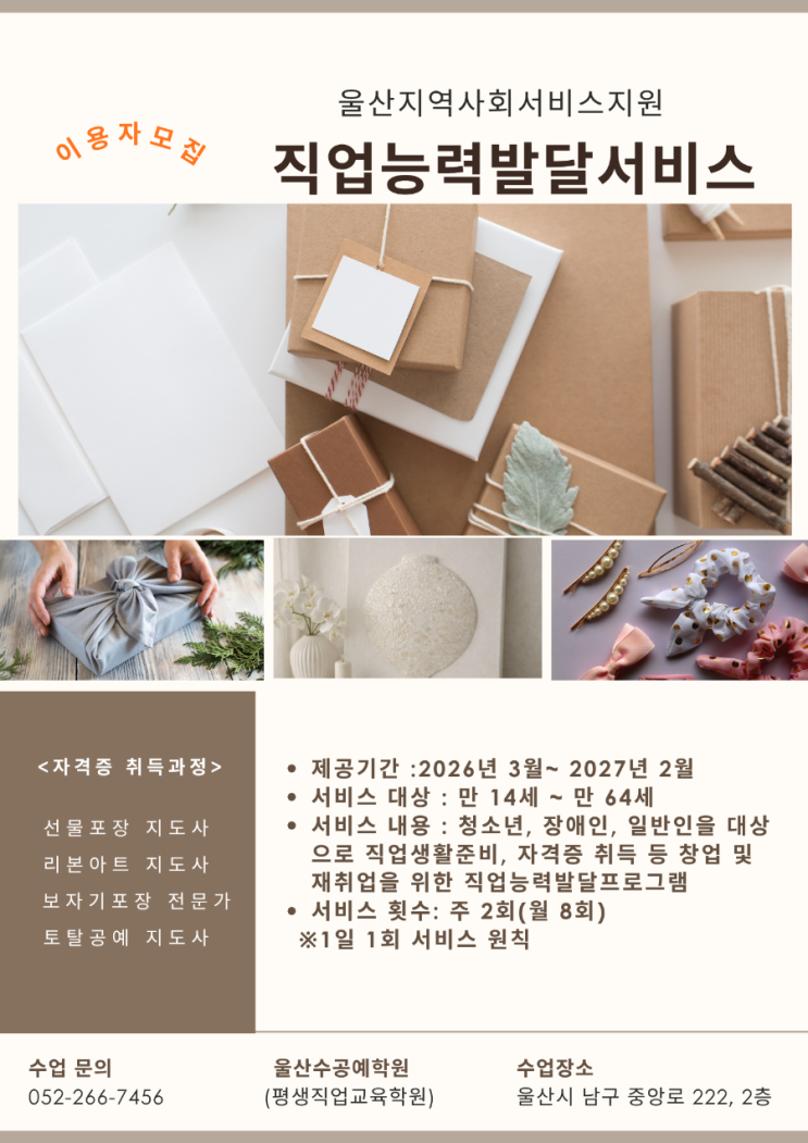 <수업공지>울산지역사회서비스지원단/직업능력발달지원서비스/이용자모집
