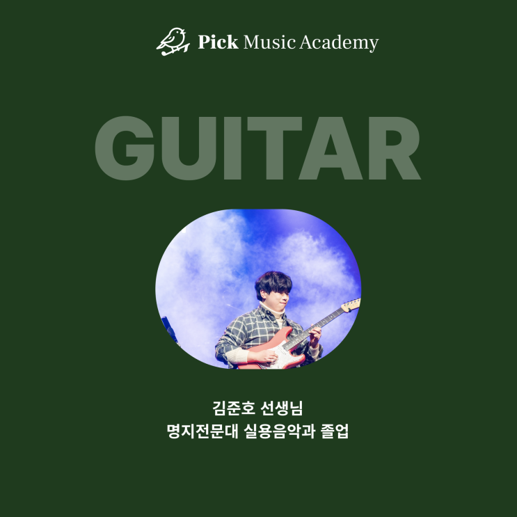 안녕하세요! 픽 실용음악학원입니다 오늘은 다양한 무대 경험과 탄탄한 실력을 겸비한 기타 강사 김준호 선생님을 소개합니다. 섬세한 어쿠스틱부터 강렬한 일렉기타까지, 폭넓은 장르 소화력과 실전 중심의 레슨으로 학생들에게 높은 만족도를 받고 있는 선생님입니다 단순한 곡 카피를 넘어서, 왜 이렇게 연주하는지 이해하는 수업을 통해 기초부터 무대·녹음까지 이어지는 실력을 만들어드립니다. 학력 서서울생활과학고등학교 실용음악과 졸업 명지전문대학교 실용음악과 졸업 수상 및 공연 경력 2015 청원페스티벌 최우수상 2016 중랑구 짱락 페스티벌 은상 2016 동두천 락 페스티벌 본선 진출 2017 평화통일염원....... <img src="https://blogthumb.pstatic.net/MjAyNjA0MDdfMjY3/MDAxNzc1NTM1OTc3MzEy.1KSxbS5197gGh-6qcPfJdeZJ4DkSzQnK8QSX03Rod1gg.mXKYTwZhobldEcNoOHB5Tjb3UTxLv5LmX553nSzQDzwg.PNG/%B1%E8%C1%D8%C8%A3%BC%B1%BB%FD%B4%D4%C8%AB%BA%B8%BB%E7%C1%F8.png?type=s3" />