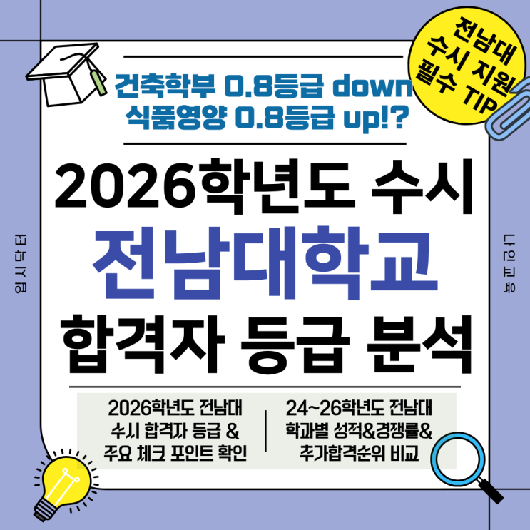 2026학년도 전남대 수시등급(+3개년 학과별 성적/경쟁률/2027 전남대 수시 지원 TIP) - 건축학부 0.8등급↓, 식품영양 0.8↑why??