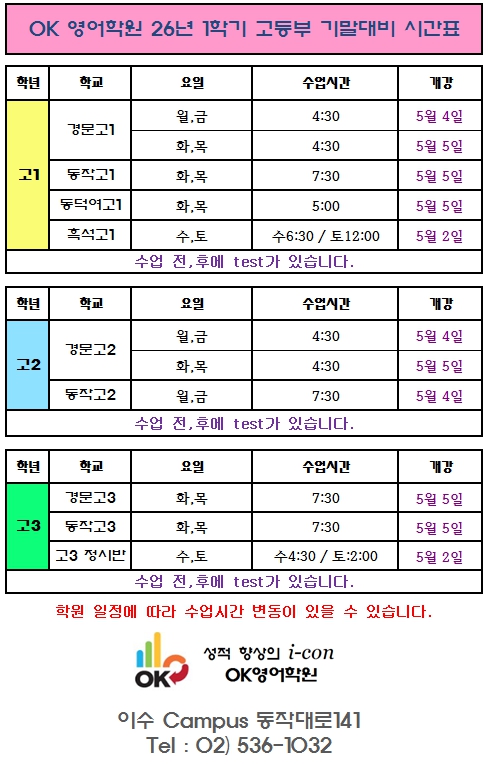 OK 영어학원 26년 1학기 기말 대비 개강(고등부)