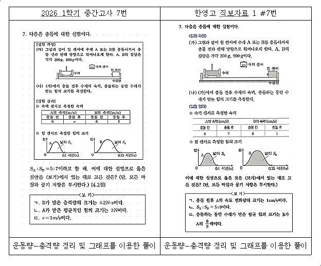 2026 한영고 물리학 1학기 중간고사 핵심 분석 BY 이준기 1) 출제 유형 분석 단원별 출제 문항 수 난이도 : 중~중상 -------------------------------------------------------------------------------- 2) 예상 등급컷 1등급 : 90점 초반 -------------------------------------------------------------------------------- 3) 1등급 판별 : 준킬러 & 킬러 문항 - 준킬러 문항 #5번 문항 : 시간 압박 속 당황하기 쉬운 유형 물체의 운동에서 시간에 대한 미지수가 2개 이상 겹치며 체감 난이도를 높였다. 타임어택이라는 압박감 속에서 학생들이 추정하기 까다로웠을 것이다. #11번 문항 : 정리하는 습관이 등급을 가른 문항 마찰이 작용....... <img src="https://blogthumb.pstatic.net/MjAyNjA0MjVfMTI3/MDAxNzc3MTA1NDU0OTgw.aFQ2h8SzfV8fagzOxfnszJOpbuSAcWq2W62jv8xKInog.KSD9sDnIAaLWVhx5M_LoLwU-ySS8IKWYavj_6R8KG0kg.JPEG/%C7%D1%BF%B5_%B9%B0%B8%AE%C7%D0.jpg?type=s3" />