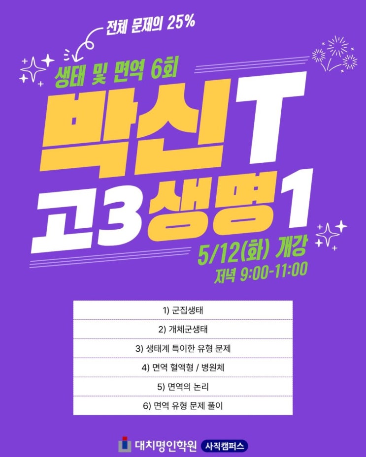 박신T 생명1 시즌3 생태 및 면역 || 대치명인학원 사직캠퍼스 사직동학원 사직동과학학원