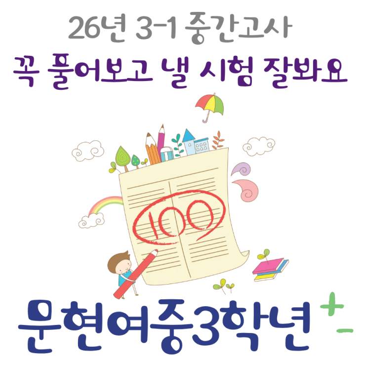 시험 직전, 꼭 풀어봐야 할 핵심 문제 안녕하세요. 부산 남구 문현동 문현 조영승 학원입니다. 중간고사 수학시험이 내일입니다 특히 문현여중 3학년 1학기 수학은 ♥ 문제 유형이 반복되면서도 ♥ 계산 실수 + 개념 혼합 문제가 많이 출제되는 특징이 있습니다. 그래서 이번에는 실제 시험에 나올 가능성이 높은 핵심 예상문제를 정리해서 공개합니다. 출처:매쓰홀릭조영승학원 모두 수학시험 대박 나시길 . . . <img src="https://blogthumb.pstatic.net/MjAyNjA0MjdfMjI5/MDAxNzc3MjYyNDE0NjMy.s-MBObX--zRe2q4mQCB3R4NhiN9V_zsrEOHiR8IAmjcg.XIgwyQZQc0KmSyrnFWxLz0DYMZZgxPL3ziIqwbt_U8Ug.PNG/%BB%E7%BA%BB_-%C1%A6%B8%F1%C0%BB_%C0%D4%B7%C2%C7%D8%C1%D6%BC%BC%BF%E4._%289%29.png?type=s3" />