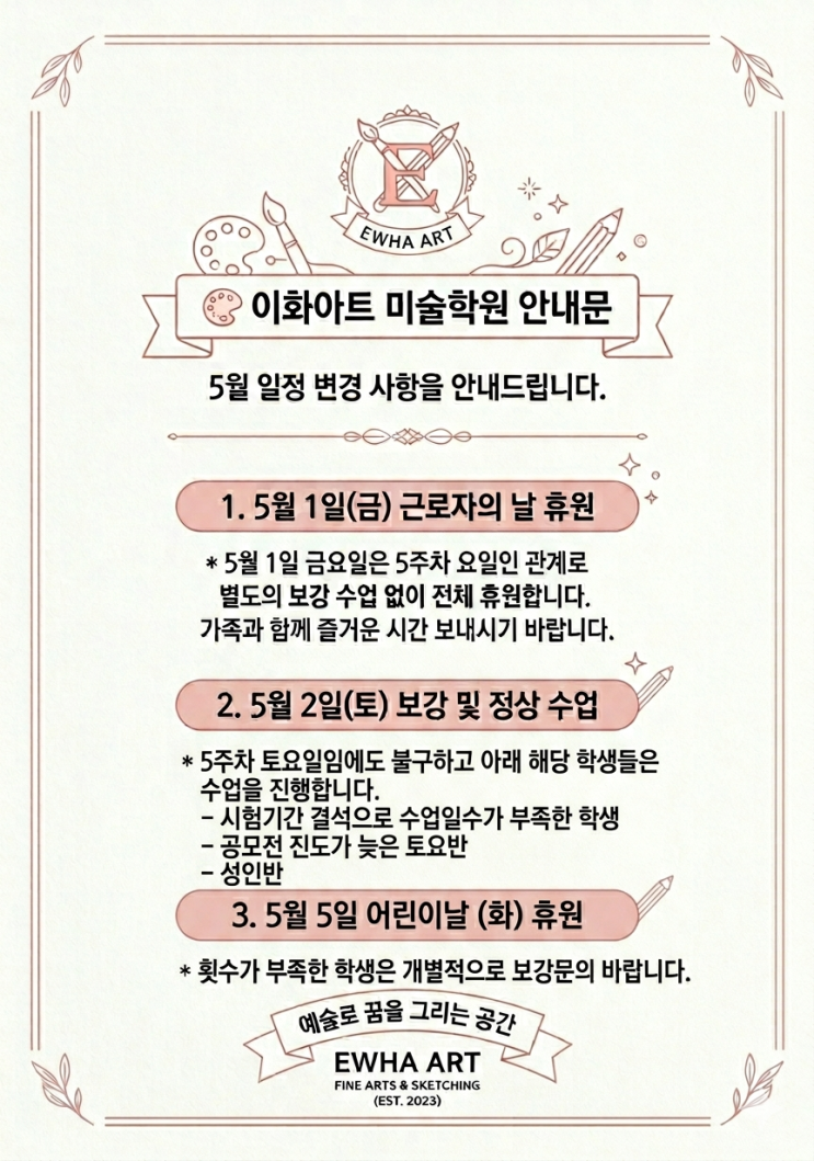 대구 월성동 이화아트미술학원-5월 일정안내