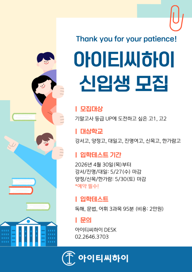 다음 주부터 중학교 고등학교 중간고사가 있습니다. 우리 아이들은 주말에도 학원에 나와 열심히 공부하고 있습니다!! 시험 결과도 중요하겠지만! 그것보다 열심히 공부한 오늘 하루가 더욱 값어치 있다고 생각합니다. 하루를 충실히 공부하고 집에 돌아가는 길에서 뿌듯함과 보람을 느낀 적이 있으신가요? 하루하루 최선을 다하면 습관이 바뀌고 인생이 바뀌며 운명이 달라집니다. 오늘도 인내를 배우며 최선을 다하고 있습니다. 처음이 가장 힘든 법입니다. 두 번째 세 번째는 점점 수월해집니다. 어렵고 힘들다고 쉽게 포기하는 아이가 아닌 견디고 이겨내고 도전하는 아이들로 성장시킬 겁니다. <img src="https://blogthumb.pstatic.net/MjAyNjA0MjFfMjky/MDAxNzc2NzU4OTI5Mjgy.MjFoeoD05Ifbh6uAhkjEcU6yuCTLqOeGL5Dm6z9hcesg.ErxyLUr-3-B4mFQ6-goK12c0O8GS_om4nc3yY6EmfrEg.JPEG/KakaoTalk_20260417_175500862.jpg?type=s3" />