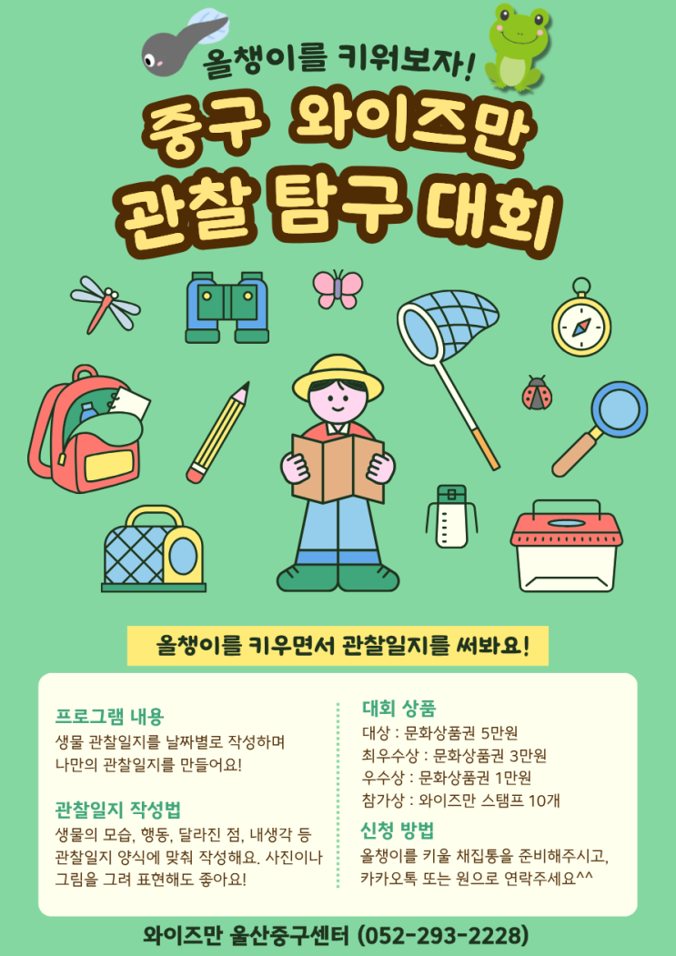 중구.북구 와이즈만의 역량강화 프로젝트!! 「올챙이·개구리알 성장 관찰 탐구 대회」 개최 안내