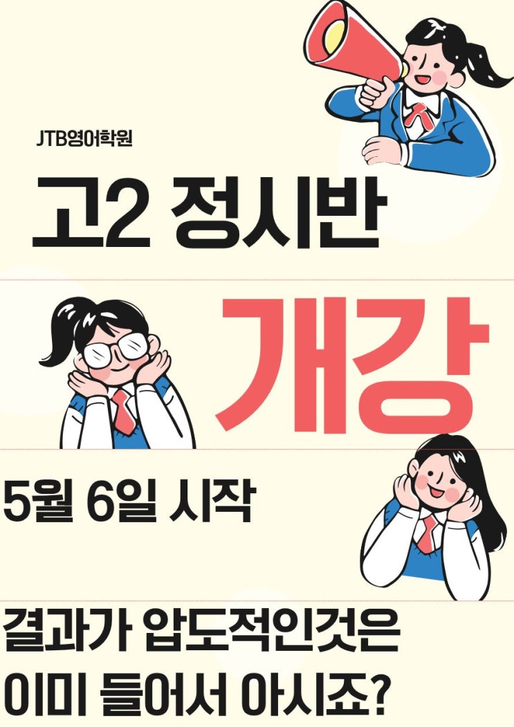 [JTB영어학원] 고2 정시반 개강(학교무관)