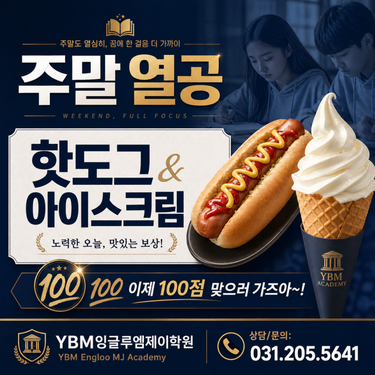 안녕하세요! 용인 서천동과 수원 영통에서 영어 맛집으로 알려져 있는 YBM잉글루엠제이학원입니다. 벚꽃이 흩날리는 예쁜 주말이었지만, 우리 YBM잉글루엠제이학원의 중고등부 학생들에게는 그 어느 때보다 뜨거운 '열공'의 시간이었습니다. 학원 현장에서 아이들과 함께한 지 벌써 20여 년입니다. 긴 시간 동안 수많은 입시 트렌드와 시험 문제를 겪어왔지만, 시험을 앞두고 눈을 반짝이며 지문에 몰입하는 아이들의 모습을 보는 건 언제나 가슴 벅찬 일입니다. 이번 주말, 시험 승리를 위해 스스로(?) 학원에 모인 우리 중고등부 학생들의 주말 학습 현장을 공유합니다. 20여 년 노하우가 녹아든 '압도적' 시험 대비 중고....... <img src="https://blogthumb.pstatic.net/MjAyNjA0MjlfOTUg/MDAxNzc3NDM2NTQyNDY3.FZnletLEJQyjWR5oIBleDrI6GmxTNLWwqvznI0J5oO0g.T-un-8uKb83OGnebP-yZQbc1hhSTTg_062N9vMFwgnQg.PNG/KakaoTalk_20260428_214835106.png?type=s3" />