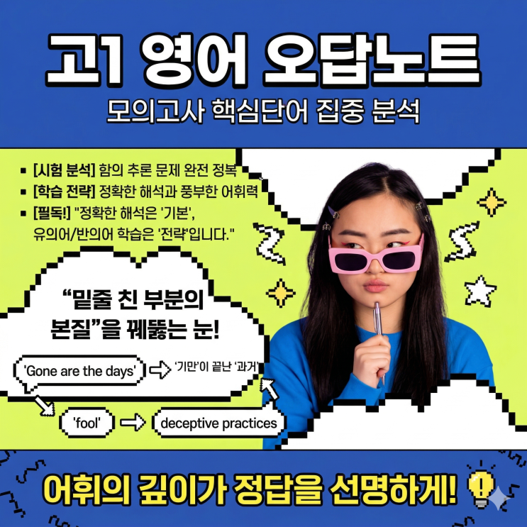 26년 제일고 1학년 1학기 중간고사 25년 3월 모의고사 28번 문제 - 함의 추론 모의고사 30번 지문 오답률 65% 정답 : 2번 다수오답 : 4번 28번 문항은 '함축 의미 추론' 문제로, 마케팅의 패러다임 변화(기만적 마케팅 → 정직한 가치 전달)를 정확히 이해해야 풀 수 있는 문제입니다. 제일고 학생들이 내신 대비로 공부할 때 놓치기 쉬운 포인트들을 짚어 드릴게요. ✅ 정답: ② Marketers previously relied on deceptive practices to achieve quick sales benefits. 지문 및 정답 분석 밑줄 친 **"Gone are the days when promotions were done in order to fool the consumer into purchasing something"**는 문법적으....... <img src="https://blogthumb.pstatic.net/MjAyNjA0MDdfMjcw/MDAxNzc1NTQ0ODQ4Mjc0.4r38T2XQpcyDvqNoQ8wfwuq4uM-Jg4NUKmeD4l2x734g.hHKBHAPgjPAMKXipLK3OL7-2NFDvqUMVYev2p726WGEg.PNG/BLOG1.png?type=s3" />
