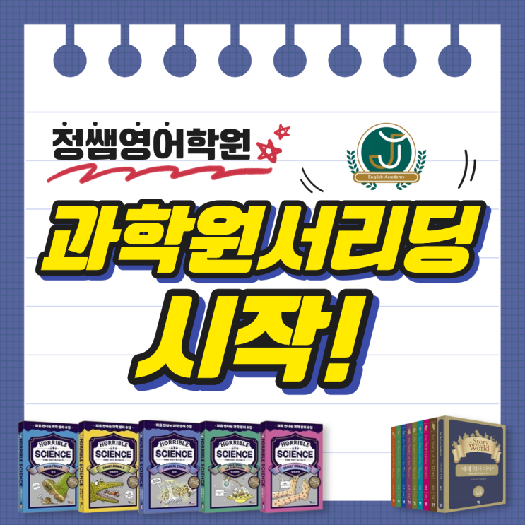 안녕하세요, 정쌤영어학원입니다. 이번주 화요일(4/21)부터 화 / 목 에 과학 원서읽기, Horrible Science 리딩이 시작됩니다. 이미 두어달 전부터 과학 관련 원서리딩에 대한 예고가 있었고, 겨울방학특강으로 먼저 진행되었습니다. 겨울방학때 앞부분을 읽었던 학생들이 있기에, 처음 읽는 학생들은 전반부(힘, 속도, 물리량 등)를 매주 한챕터씩 주말에 찬찬히 읽어와야 합니다. 걱정하실 건 하나도 없습니다. "아무것도 안읽고 있을때 걱정을 해야 하는 것이지요." 정쌤영어학원은 Contents-Based Learning (영어로 각 분야 지식을 습득하는 학습) 에 기반해 계속해서 깊고 폭넓은 리딩을 해나갈 예정입니다. 이제 저희 클래스는 St....... <img src="https://blogthumb.pstatic.net/MjAyNjA0MjFfMTg4/MDAxNzc2NzY3ODAzMDI1.tk9QAaHuIAvlwviNRmG666H_VSH0XXdQxU1A5w5O8tcg.GjX5daJK5FawsGX2CwvoOYy9bnRYDiTOvgFlPZtfPjog.PNG/KakaoTalk_20260421_184735614.png?type=s3" />
