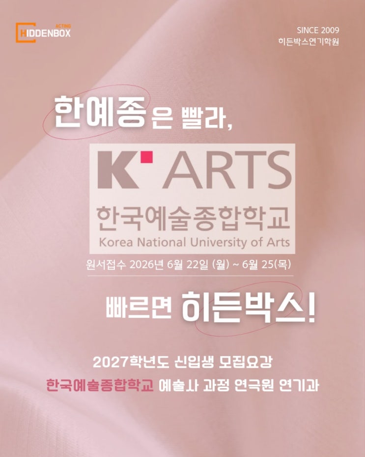 [히든박스연기학원] 2027학년도 한국예술종합학교 입시 전형