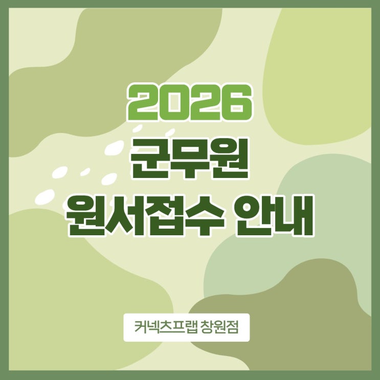 안녕하세요. 커넥츠프랩 창원점입니다. 2026 군무원 원서접수에 대해 안내 드리겠습니다. [국방부] 접수 기간: 4/23(목) ~ 4/29 (수) * 평일 9시~21시, 주말/공휴일 9시~18시 ▼ 원서접수 사이트▼ 국방부 군무원 채용 홈페이지 입니다. [육군] 접수 기간: 4/23(목) 9:00 ~ 4/30(목) 18:00 ▼ 원서접수 사이트▼ 국방통합모집 포털 [해군/해병대] 접수 기간: 4/23(목) 09:00 ~ 4/29(수) 18:00 ▼ 원서접수 사이트▼ 대한민국 해군 [공군] 접수 기간: 4/23(목) 09:00 ~ 4/29(수) 18:00 ▼ 원서접수 사이트▼ 국방통합모집 포털 반드시 기간 내에 접수하시고, 마지막까지 파이팅하셔서 좋은 결과 얻으시길 바랍니다. 원활한 상담을 위해 예약 후 방....... <img src="https://blogthumb.pstatic.net/MjAyNjA0MTNfMjU4/MDAxNzc2MDY0NTU2NDE0.-3SdNA3RSJsRo1V8ILkNY_kvXwxBMpEleFwYsWW8S98g.qZdK1VbzDjnk_3aKX58IZR6mEJfjiEtWQnePvmyZLf4g.JPEG/%C1%A6%B8%F1%C0%BB_%C0%D4%B7%C2%C7%D8%C1%D6%BC%BC%BF%E4._%284%29.jpg?type=s3" />