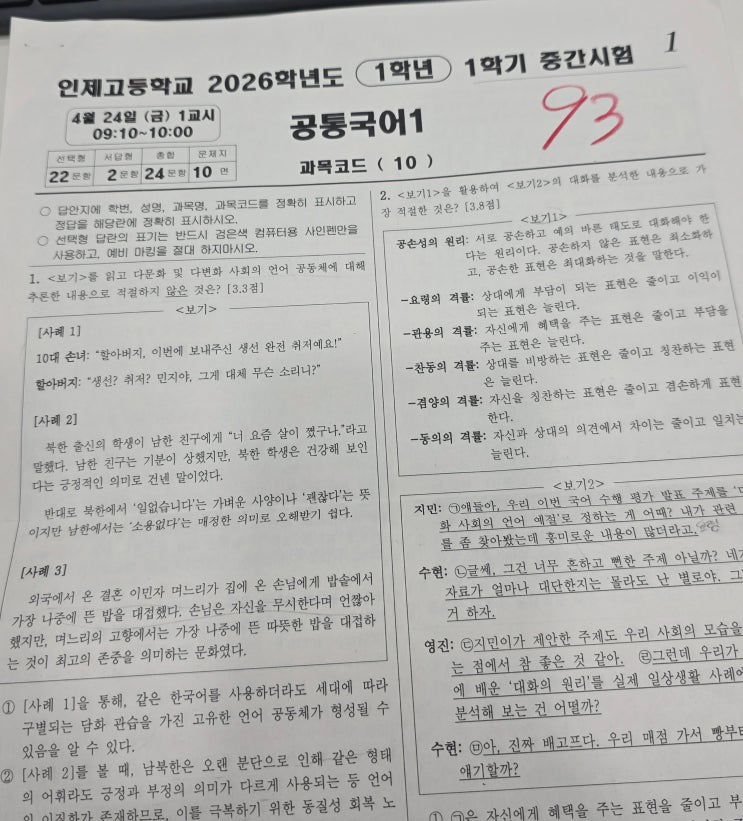 [인제고1중간-출제경향] "단순 암기로는 넘을 수 없는 벽, 수능적 사고가 1등급을 만든다"– 2026학년도 인제고1 1학기 중간고사 분석 #인제고1국어시험#인제고국어학원