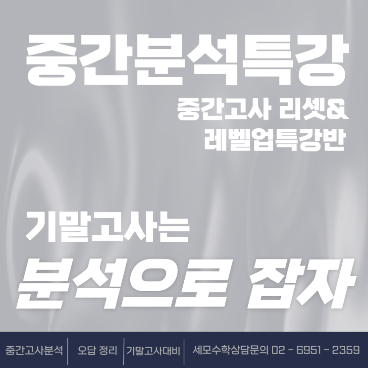 세모수학 5월 원데이 특강 중간고사 리셋 & 레벨업 특강 시험 끝났다고 끝이 아닙니다. 이때 바로 ‘분석’한 학생만, 기말에서 웃습니다. 중간고사 리셋 & 레벨업 특강 이번 특강은 단순한 복습 수업이 아닙니다. 학생 개별 시험지를 바탕으로 ✔ 어떤 유형에서 반복적으로 틀리는지 ✔ 왜 틀리는지 (개념 vs 습관 vs 접근 방식) ✔ 다음 시험에서 어떻게 바꿔야 하는지 를 정확하게 짚어주는 시간입니다. 이렇게 수업합니다 시험 성적이 아쉬운 학생 → 틀린 유형 집중 분석 & 교정 → 같은 실수 반복되지 않도록 풀이 방식 개선 시험 잘 본 학생 → 현재 실력 점검 & 함정 유형 테스트 →....... <img src="https://blogthumb.pstatic.net/MjAyNjA0MTVfMjQ0/MDAxNzc2MjU0NjIxMDI0.0-lq3Yb9fdj-eilESdoKcvMyC4EoOSPADtfQ4GgUfFEg.N6lgrQ46ywgxAGYwnca996nfk12M_OzDCYyM0FlPJvEg.PNG/%C1%A6%B8%F1%C0%BB_%C0%D4%B7%C2%C7%D8%C1%D6%BC%BC%BF%E4._%2815%29.png?type=s3" />
