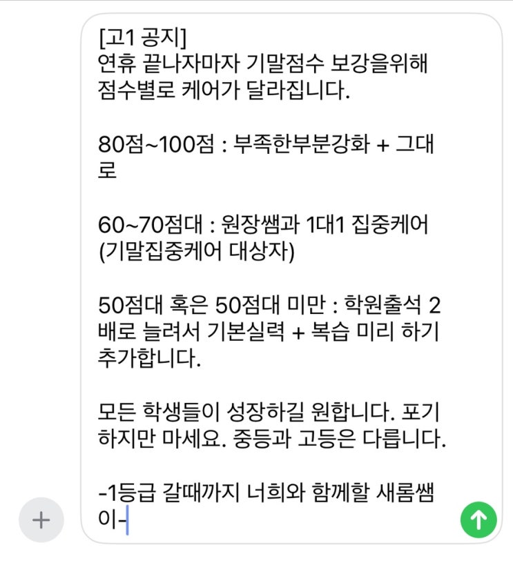 첫시험을 마친 1학년들 점수별 기말고사 대비계획