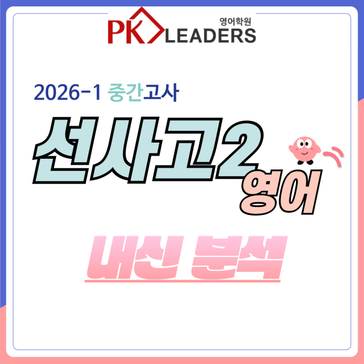 선사고2 영어 내신-출제 구성 [시험범위] ■ 교과서 : YBM (박) 1과,2과 (Further reading 포함) ■ 소설 : I,Robot SCENE 1~8, Further(Optional) [영역별 출제구성] ■ 객관식 25문항 ( 90점) ⓵ 교과서 : 17문항 ( 61점) ⓶ 소설 : 8문항 ( 29점) ■ 서,논술형 2문항 ( 10점) ⓵ 교과서 (10점) [유형별 출제구성] 어휘 6 빈칸 1 어법 1 세부내용 10 중심내용 5 순서,흐름 2 영작 2 선사고2 영어 내신-난이도 및 총평 ■ 난이도 : 최상 □ / 상 □ / 상중 □ / 중 / 중하 □ / 하 □ [총평] 전반적으로 난이도는 평이하였습니다. 어휘와 내용 위주(객관식 요약문 문제 포함) 출제인 부분 등 출제 기조에 큰 변화는 없었음. 작년 1년 동안 문....... <img src="https://blogthumb.pstatic.net/MjAyNjA0MjZfMjY2/MDAxNzc3MTc2ODk4NzA4.p3xkCxJCVVqlLN7WVS2LJfdfxMInPiYSIxXLENlEeyIg.Uc4msKH0yldMkjoMPw71AEc1EGs0gRx48sx2xDUXYgUg.PNG/001.png?type=s3" />