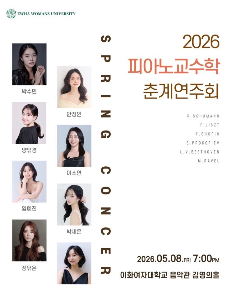 ☘️ 연주 소식 안내드립니다 5/8일 금요일 오후 7시에 이화여자대학교 음악관 김영의홀에서 첫번째 순서로 연주합니다:) 제가 연주할 곡은 “슈만 알레그로” 곡이며 화려한 도입부와 서정적인 멜로디라인이 돋보이는 곡입니다. 티켓 필요하신 분은 댓글, 연락 남겨주세요 https://www.instagram.com/hjewha_piano?igsh=bjdwbDV1N2hld3lk&utm_source=qr <img src="https://blogthumb.pstatic.net/MjAyNjA0MjZfMjIz/MDAxNzc3MTczMDQxOTYz.x8VPOBxIKskMxphfusGqaWlWKZCAMOKUaBELuPj1rH8g.Ya3xjQ_PVp-KM4a3ydsQCroOAoU5eOWQ6JqF28I2eXwg.JPEG/output%A3%DF3807028039.jpg?type=s3" />