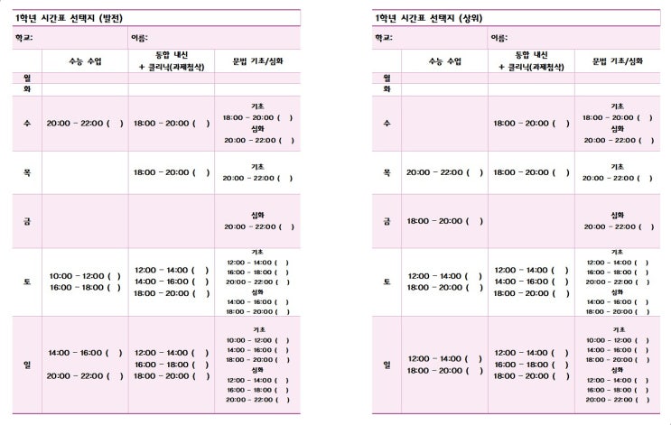 [1학기 중간고사 끝] 1학년 시간표 안내