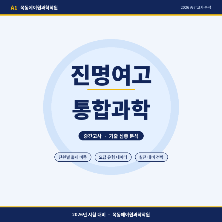 진명여고 통합과학 중간고사 분석 오답 유형과 단원별 출제 비중 정리 안녕하세요. 목동에이원과학학원 입니다. 오늘은 2026학년도 진명여고 1학년 1학기 중간고사 통합과학 시험을 분석한 내용을 공유드립니다. 시험이 끝난 후 "생각보다 훨씬 어려웠다"는 반응이 많았습니다. 실제로 어떤 구조였는지, 어느 단원에서 가장 많이 틀렸는지, 문항 데이터를 바탕으로 짚어보겠습니다. 진명여고 통합과학 시험, 전체 구조는 이번 시험은 선택형 20문항, 서답형 4문항, 총 24문항으로 구성되었습니다. 전체 난이도는 상으로 분류됩니다. 담당 선생님의 총평을 그대로 옮기면 이렇습니다. 시간이 부족한 시험이었고, 암기는 꼼꼼하게 물어봤....... <img src="https://blogthumb.pstatic.net/MjAyNjA0MjdfMjMz/MDAxNzc3MjY4ODgwOTI5.8lmlZcg8ZlNx_KKAZ2XKprMOfI-XRDK3yu48jXbPoBog.o49WaYXA9C5UHGpHJHrVBLGVjuHiSU-O9XAGsauvLH4g.PNG/%BF%A1%C0%CC%BF%F8%C4%AB%B5%E5%B4%BA%BD%BA_01_%C1%F8%B8%ED%BF%A9%B0%ED%C5%EB%C7%D5%B0%FA%C7%D0.png?type=s3" />
