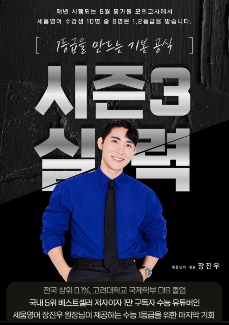 세움영어 개강 3일 전 안녕하세요, 세움영어 원장 장진우입니다. 이전보다 한 차원 격을 높인 시즌3 실력완성반에 오신 여러분들을 진심으로 환영합니다. ■■■시즌3 실력완성반 개강 일정은 다음과 같습니다. ■금요일 S1반: 5월 1일 금요일 18시 30분 ■토요일 S2반: 5월 2일 토요일 18시 30분 ■일요일 S3반: 5월 3일 일요일 18시 30분 ※수업 시작 30분 전에 도착하여 교재를 배부받고, 스마트폰은 교실에 들어가기 전에 제출해 주시기 바랍니다. ■■■송파/잠실 지역 전체에서 수능 영어 전문학원은 세움영어가 [유일]하며, 그 결과는 [압도적]입니다. ■3등급 이상 엄격하게 선발된 36명의 소수정예 수업 ■내신 휴강없는 1년 / 42주 완....... <img src="https://blogthumb.pstatic.net/MjAyNjA0MjhfMzEg/MDAxNzc3MzY3NTc3ODQ4.4rbN1CuaYp0F5UB-dkG3bny9c14WxMhujQP56_8nFrsg.eVmv3AU3TbiuhUjRhkK3yMdRxWoEQu0nmucK7GhlaAAg.JPEG/900_1777367508019.jpg?type=s3" />