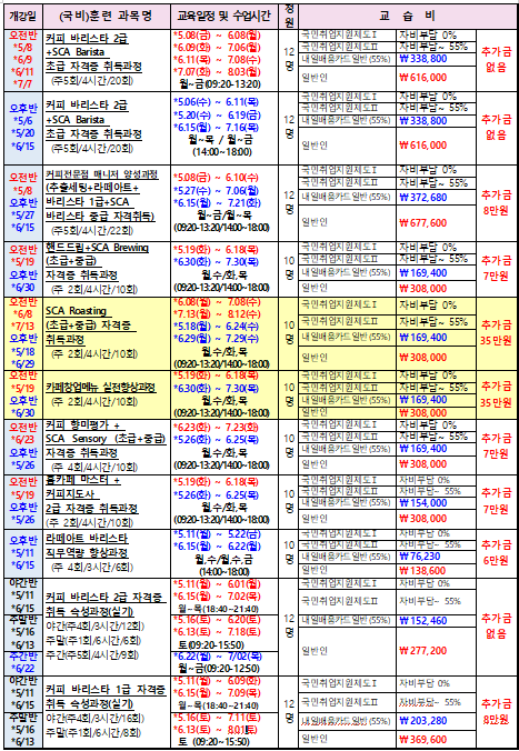 존스커피바리스타학원(상무점) 5~6월 개강 안내