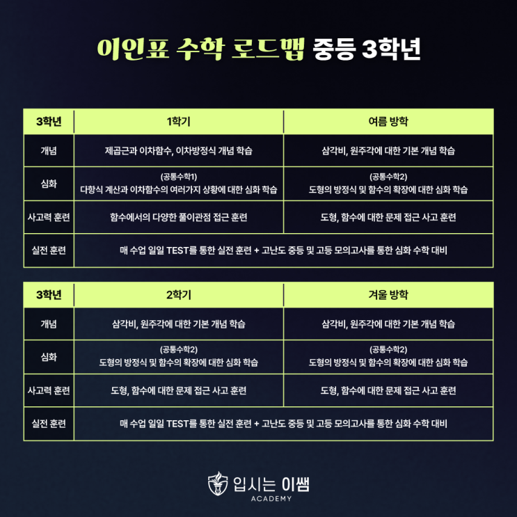 초롱꽃마을 심학중 수학 커리큘럼 및 이인표 수학 중학생 로드맵 - 입시는이쌤 학원