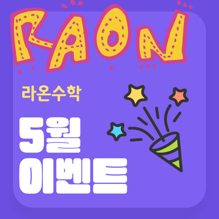 안녕하세요 라온수학의 원장 지니샘입니다 이번에는 5월 이벤트에 대해 설명드리겠습니다 5월에는 이벤트가 많습니다 제일 먼저 어린이날 행사 이벤트로 1. 5월 4일 파티 떡볶이 이벤트 나 혼자만 맛있는거 먹을수 없죠~~ 친구들과 함께 올 수 있으니 운광초, 동패초중, 한빛초중 학교친구들도 초대 해주세요 맛있는 떡볶이 와 간식 및 고난도 퍼즐 풀기 간단한 보드 게임도 함께 할 수 있습니다~~ 음료나 과자를 더 가지고 와서 먹어도 됩니다 2. 친구소개 이벤트 주변에 나도 라온수학 학원가고 싶어!! 라고 하는 운광초 한빛초 친구들이 있다면 또는 같이 다니고 싶은 운광초, 한빛초중, 동패초중 친구들이 있다면 이 기회에 친구를 소개해보....... <img src="https://blogthumb.pstatic.net/MjAyNjA0MTdfMjU5/MDAxNzc2NDA2MjQ4OTAw.1_udHtncZToTQudeujDvGk9d4-t7LF1JQyH1coZtuewg.YARCTgoaHLJCDJDf1YmSCL6dVtH6va9eL2Ywor4zWCcg.PNG/001.png?type=s3" />