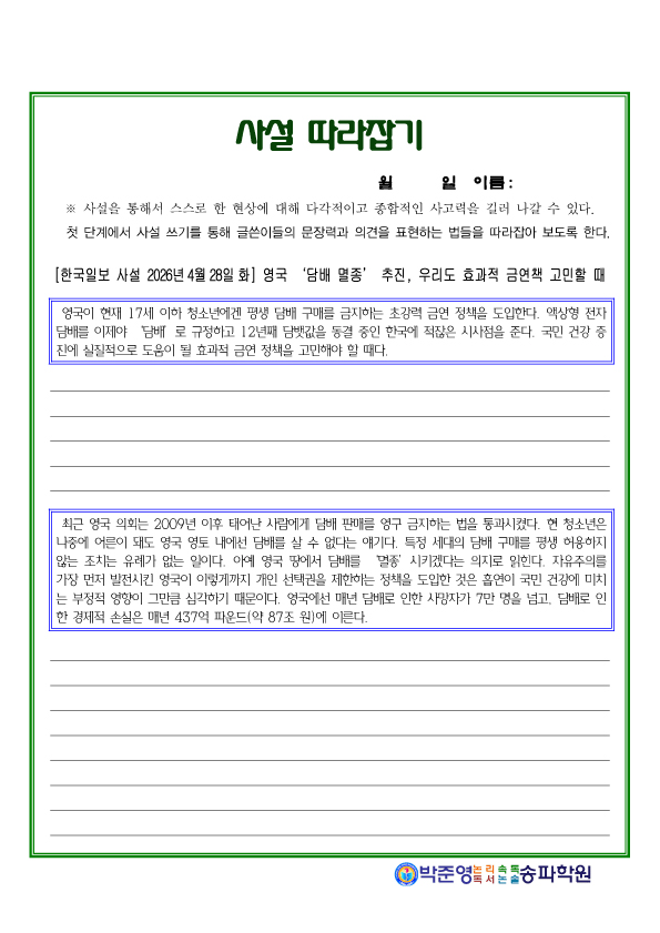 2026년 4월 28일 사설 과제입니다. 첨부 파일 확인바랍니다. <img src="https://blogthumb.pstatic.net/MjAyNjA0MjhfMjcy/MDAxNzc3MzM1NjQ1MTg2.2MuSvRl9xJZZ6TH1I1CuPCzGn2N1JC0PGdDp69Q8bQQg.mnmL8gOpP0n99VlMSGcG6CvIr5rNX6qY1KK4olSPBnYg.GIF/01.gif?type=s3" />