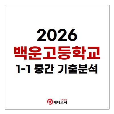 안녕하세요! 평촌학원가에 위치한 중고등 수학 전문 페다고지수학학원 입니다. 이번 백운고 1학년 1학기 중간고사 수학 시험 기출 분석 자료 입니다. 이번 백운고 1학년 1학기 중간고사는 다항식의 연산 ~ 이차방정식과 이차함수까지 시험범위로 진행 되었습니다. 시험 배점은 객관식 20문항(100점) 으로 출제 되었습니다. 이번 백운고 1학년 시험은 예년보다 조금 쉽게 출제되었습니다. 전체적으로 교과서 및 학교 프린트에서 다수 출제되어, 시험 대비를 하기에는 큰 어려움이 없던 시험이었습니다. 전체적인 난이도는 평이하였으며 문항 수도 적고 서술형이 없어서 전체적으로 등급컷은 높을 것으로 예상됩니다. 이번 백운고 1학년 1학기 중간....... <img src="https://blogthumb.pstatic.net/MjAyNjA0MjhfMjQx/MDAxNzc3MzYwNjk2NzI3.yGkkcXhsKfNIarrxxKh4L222SfhbA3R4lkLn488lJ18g.4-YxbpSXTI8neDs0--8TWIkLltcZ-2uVy25D9n4mgpIg.JPEG/%B9%E9%BF%EE%B0%ED1%BD%E6%B3%D7%C0%CF.jpg?type=s3" />