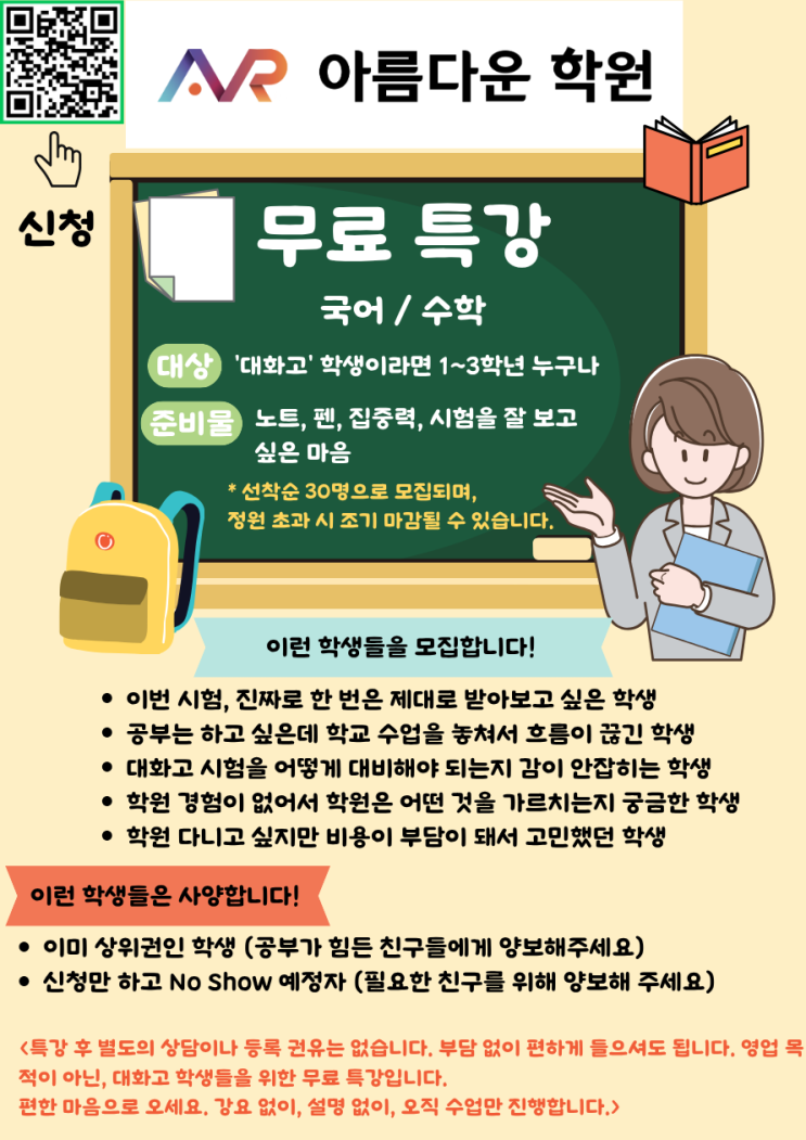 잔인하게 느껴질 만큼 바쁜 1학기 중간고사가 마무리되어갑니다. 시험 결과에 대한 안도 혹은 아쉬움이 채 가시기도 전, 우리 앞에는 더 큰 산들이 기다리고 있습니다. 바로 기말고사와 6월 모의평가입니다 5월 연휴, 단 3일의 독한 몰입이 다가올 6월 모의평가와 기말고사의 자신감이 됩니다. 불안함이 확신으로 바뀌는 경험, 김정연 국어와 함께라면 가능합니다. [ 고 1 ] ① 내용: 기말 성적의 승부처: 문법 요소 & 문학 집중 공략 ② 일정: 1회 5/1 (금) PM 2:30-5:30 2회 5/2 (토) PM 1:00-4:00 3회 5/5 (화) AM 11:30-2:30 ③ 수강료: 재원생 : 5만원 비재원생 : 18만원 "기회는 모두에게 주어지지만, 그 기회를 성적으로 바꾸는....... <img src="https://blogthumb.pstatic.net/MjAyNjA0MjBfMTQ3/MDAxNzc2Njc0MDEzMzk4.wnKPkt1RRccAwX1gB52AGs-MEc4HlAq7bpSTC_ULeoEg.XSxAKYJWO-sJaWhBVpFKzl1WAsma0eGnRv94wQYsK3Yg.PNG/27%B3%E2_6%B8%F0_%B4%EB%BA%F1_3%C8%B8_%C6%AF%B0%AD_-_%BF%DC%BA%CE%BF%EB.png?type=s3" />