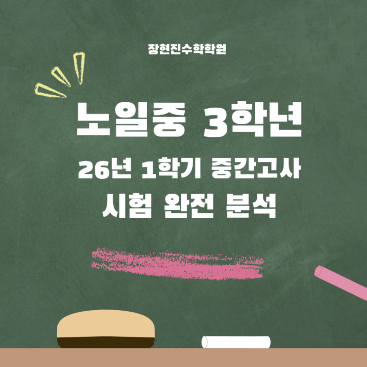 Q. 노일중 3학년 2026년 1학기 중간고사 수학은 어떻게 출제됐나요? A. 전체 25문항 중 하 난이도 비중이 높아 개념만 잡혀 있으면 고득점이 가능한 구조입니다. 단, 14번·24번·25번 상 난이도 문항이 등급을 결정합니다. 마들역 장현진수학학원이 오늘(4월 27일) 시험을 직접 분석했습니다. 노일중 수학 서술형 감점 없이 쓰는 법 — 실전 채점 기준 공개 오늘 노일중 3학년 중간고사가 끝났습니다. 마들역 장현진수학학원에서 시험지를 바로 수거해 분석했습니다. 상계동에서 23년째 노일중 학생들을 지도해온 경험을 바탕으로, 오늘 시험의 핵심만 정리합니다. 시험 구성 한 눈에 보기 노일중 중간고사 대비, 2주 전 반드시 해야 할 수학 전략....... <img src="https://blogthumb.pstatic.net/MjAyNjA0MjhfMjUz/MDAxNzc3Mzc5MDQ3ODc0.9ZhAoG_pxwIpFtNrVDwnPiOX9aAuy4j4tsior29E89Ag.t5E9vu2QZXW1B3zZAjMIzR5FLdCYY3ZE2RoKKBRYfhIg.PNG/%B3%EC%BB%F6_%C4%A5%C6%C7_%B9%E8%B0%E6_%BD%C9%C7%C3%C7%D1_%B4%BA%BD%BA_%C4%AB%B5%E5%B4%BA%BD%BA_%281%29.png?type=s3" />