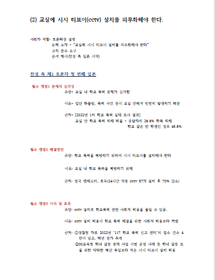 교실에 시시 티브이(cctv) 설치를 의무화해야 한다