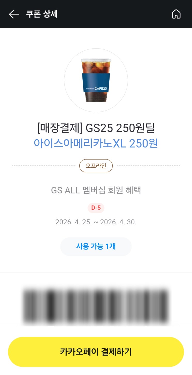 안녕하세용 오늘은 편의점 커피 입니다. 제가 이사간 집 앞에 gs 편의점이 하나 있는데요.. 오늘 마침 보니.. 카카오페이에서 할인 이벤트 한다고 해서.. 아침 출근길에 들렀습니당 거의 매번 커피를 들고 출근 하는 것 같아요 ㅠㅠ 아직은 재밌습니다 하루하루 ㅎㅎㅎ 오늘은 또 수업 끝나고 가족 모임도 있어서 ㅎㅎ 꽤?? 크죠? 전 매번 퇴근이 늦다보니.. 출퇴근용 차는 외부에 주차를 해 놓습니다 ㅠㅠ 어차피 그 시간에 자리가 없다보니.. 포기를... 주차 등록도 안 해놨어요 신도시 같이 여기저기 빈 상가들도 많고.. 한적하고 좋습니다 요새 ㅎㅎ 밤에 걷기도.. 아침에 걷기도 좋은 동네인 것 같아요 ㅎㅎ 매번 지치기도 하고 힘들기도 하....... <img src="https://blogthumb.pstatic.net/MjAyNjA0MjVfMTEz/MDAxNzc3MDczODc2NDM4.lpg_XCDACKewQTo7HBOR9M9mdQpJgNuNUUzleb7lcNgg.rnS_Fp4hEw6RuHft5SdyH1Xb7QuQfejeaTYuUfRv4nwg.JPEG/KakaoTalk_20260425_083057012_05.jpg?type=s3" />